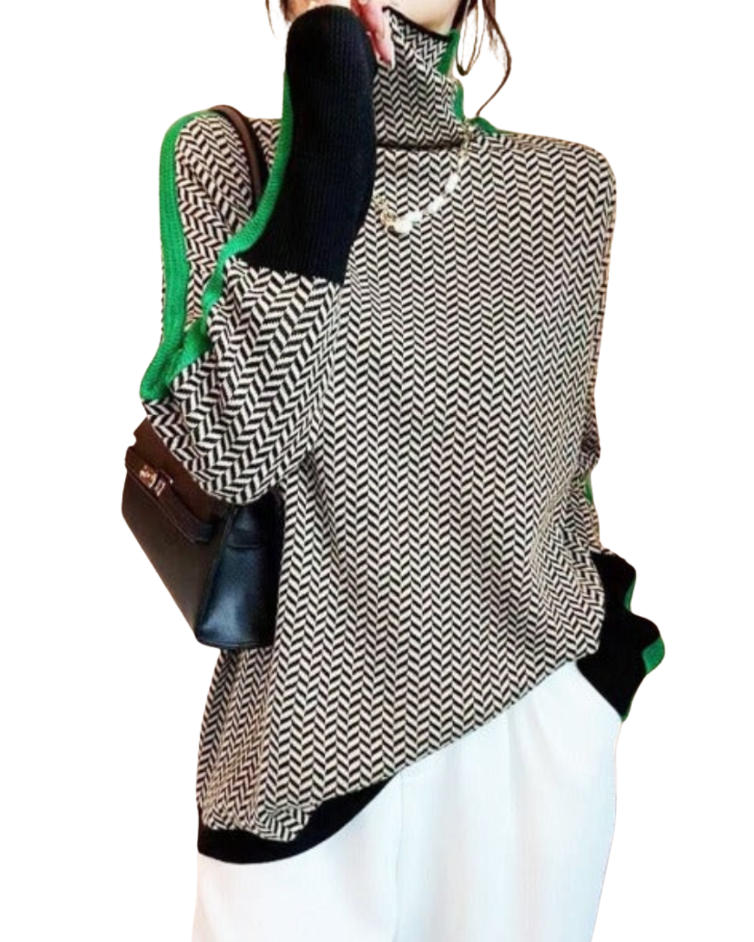• Moderner Stil: Mutige, kontrastierende Details verleihen dem Look einen Hauch von markanter Eleganz.