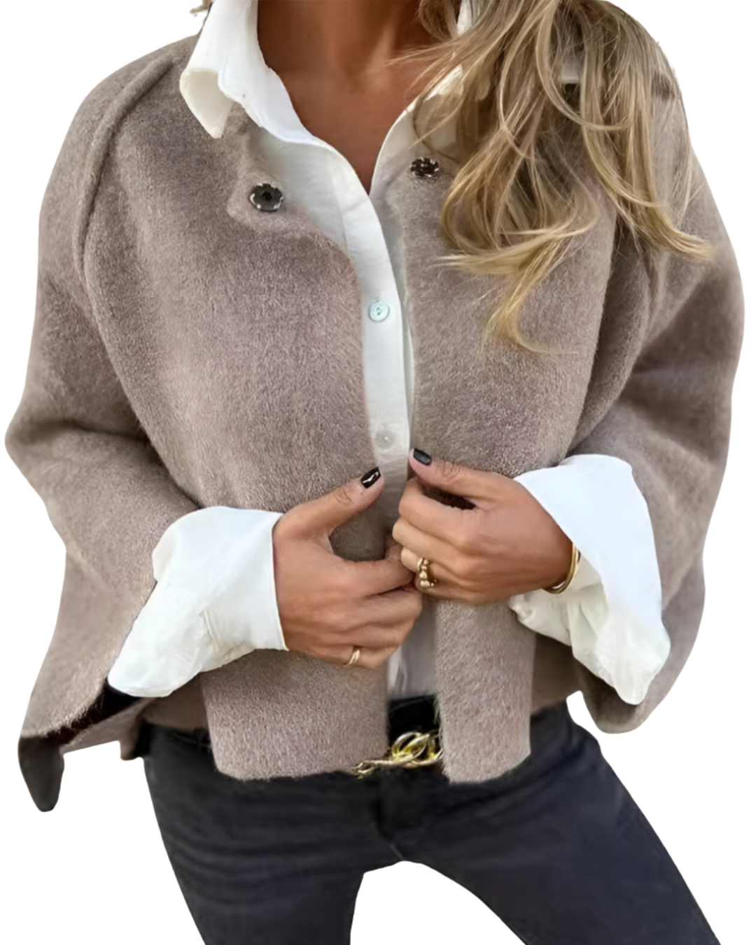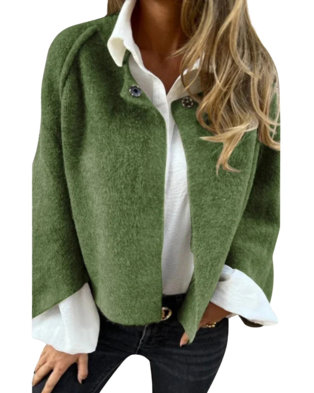 ✔️ Elegante Details – wie ausgestellte Ärmel und große Knöpfe
