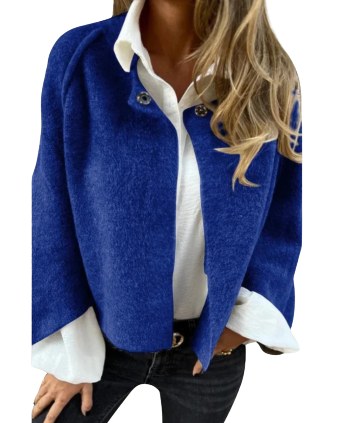 Der Lina vereint modernen Stil mit klassischer Eleganz. Der sanfte, leicht taillierte Schnitt und die offene Front verleihen eine entspannte, aber gepflegte Note – ideal für die Übergangszeit.