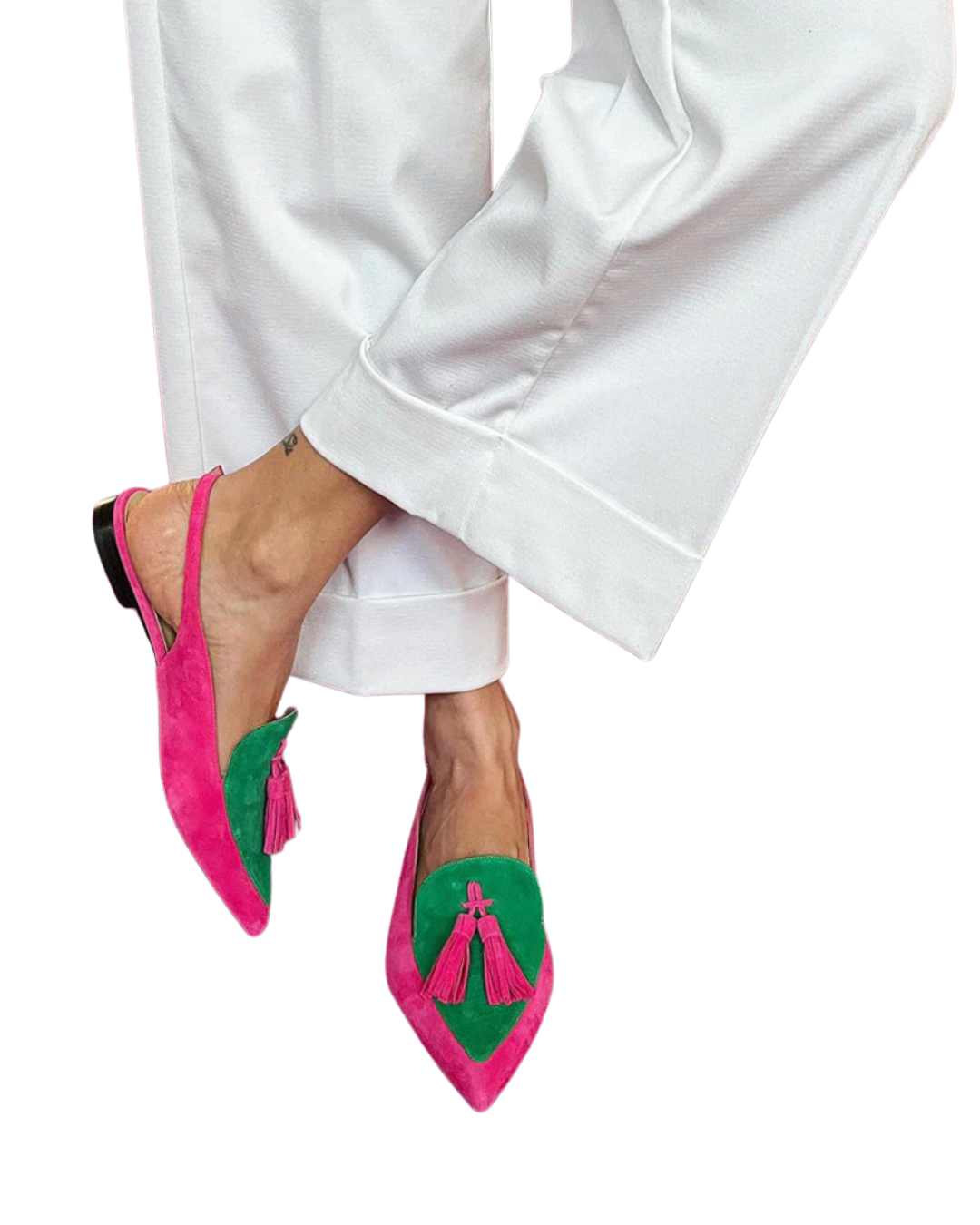 Frendessa | Bunte Ballerinas mit Fransen und einem dekorativen Riemchen am Knöchel